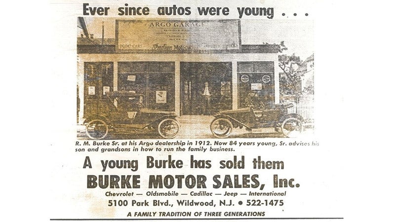 Our story began in 1912, when Raymond M. Burke, Sr. launched the first gas station in Wildwood. After serving as a foreman on the Delaware River and returning home from World War I, he obtained a Chevrolet franchise and went on to sell Oldsmobile cars until a fire destroyed his facility. His son, Raymond M. Burke, Jr., also had a career in the automotive industry and opened an Oldsmobile dealership in Wildwood in 1946. Soon after, he obtained a Cadillac and Chevrolet franchise. Years later, Raymond M. Burke III, David A. Burke, Kathryn Burke-Sellers, and other Burke family members evolved the business into what is now Burke Motor Group.