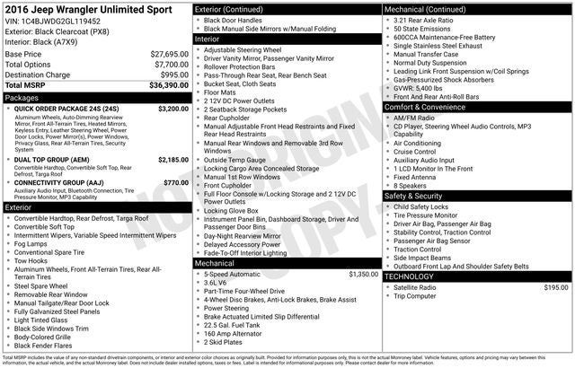 2016 Jeep Wrangler Unlimited Sport