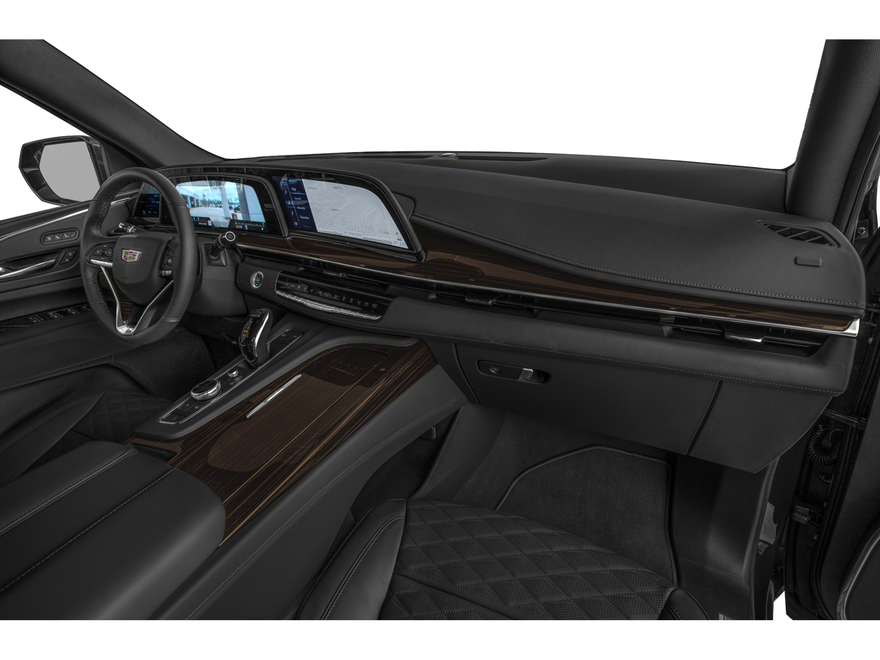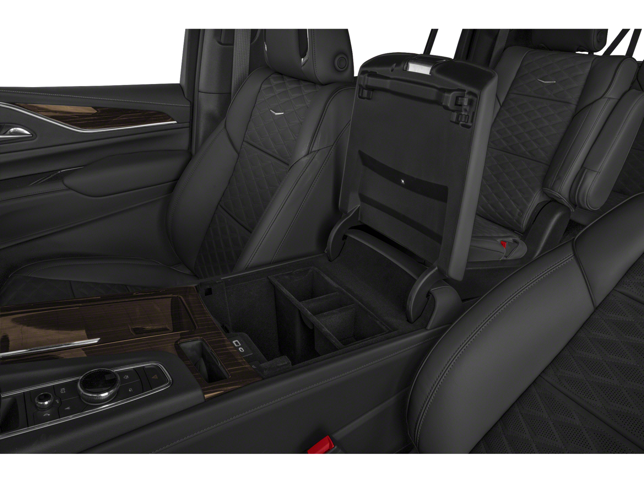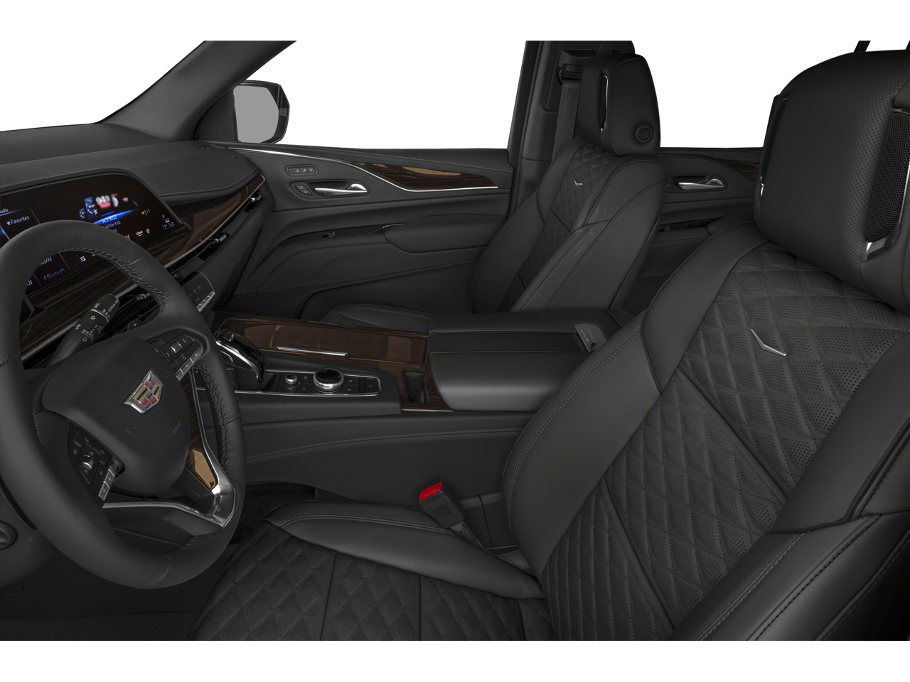 Indulge in the convenience of the power-retractable assist steps with perimeter lighting, the refrigerated console, and the luxurious Night Vision technology. Immerse yourself in the rich, Dark Mocha Metallic exterior, complemented by the Cadillac Crest puddle lamps that add a touch of elegance.