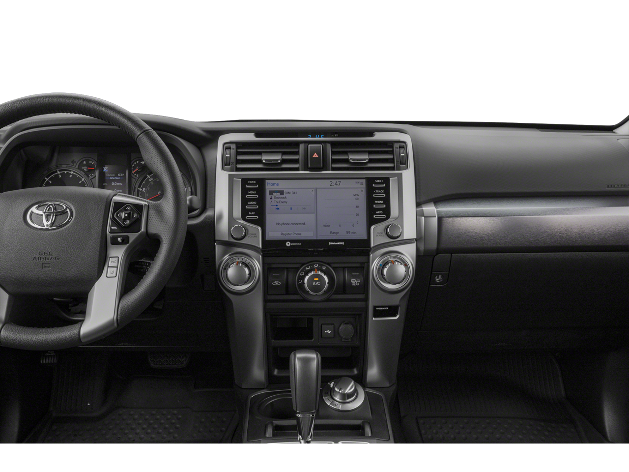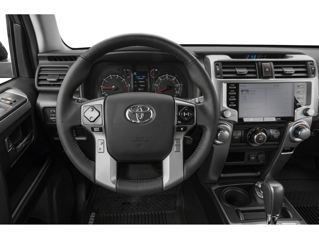 The 4Runner's rugged exterior is complemented by a spacious and well-appointed interior, featuring comfortable SofTex-trimmed heated front seats, a premium audio system, and a host of advanced safety and convenience features. Enjoy the convenience of the Multi-Terrain Back Monitor, Blind Spot Monitor, and the intuitive Premium Audio with Dynamic Navigation system.